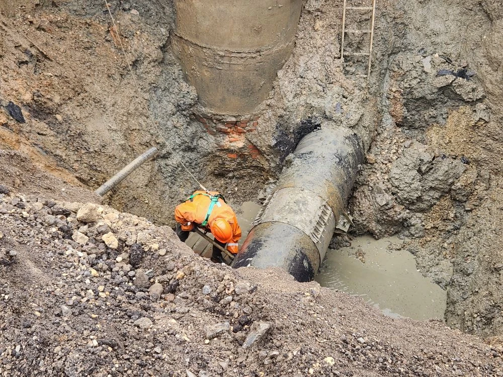 В Дзержинском районе Волгограда по улице Эльтонской специалисты «Концессий водоснабжения» провели работы по усилению конструкции магистрального водовода в процессе устранения обнаруженного технологического нарушения.